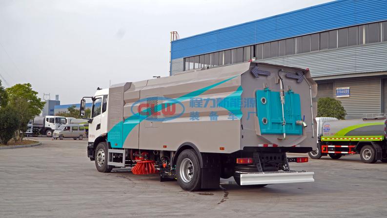 一、底盤配置: 采用東風(fēng)天錦EQ1180GEVJ1車身,配置玉柴TZ370XS-LKM1101發(fā)動(dòng)機(jī)160/218馬力,國(guó)六排放標(biāo)準(zhǔn),軸距5300(mm),整備質(zhì)量12.75噸,額定載質(zhì)量5.12噸,五擋變速箱,帶動(dòng)力轉(zhuǎn)向,帶原廠空調(diào),該洗掃車采用純電動(dòng)二類底盤改裝、風(fēng)機(jī)、清水箱、垃圾箱、左右立掃、掃盤降塵系統(tǒng)、左右高壓側(cè)噴高、吸盤內(nèi)置高壓主噴桿、氣動(dòng)系統(tǒng)、液壓系統(tǒng)、專用裝置電控系統(tǒng)和副車架等改裝而成。該車上黃牌,城區(qū)道路請(qǐng)注意限行標(biāo)識(shí)。