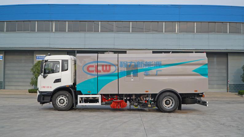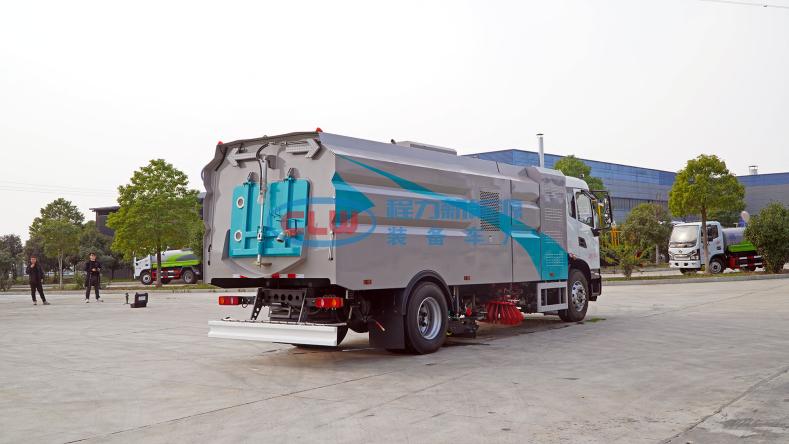 12、左右立掃為單掃盤,減少了掃刷的數(shù)量和掃刷消耗量,能降低使用成本。掃刷上加裝噴水裝置,用于噴霧降塵。左右立掃分開控制,可實(shí)現(xiàn)右掃和全掃等不同的作業(yè)模式。