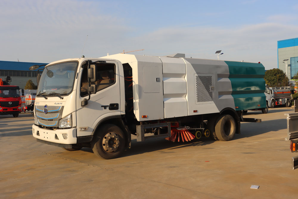 四、其他說明: 福田純電動洗掃車是我公司自行設計開發、具有自主知識產權、國際領先技術水平的新一代路面、路沿清洗、清掃及噴霧降塵的專用設備。該款洗掃車結合了掃路車及高壓清洗車的功能特點,并解決了吸塵車無法在城市道路上清洗路沿的短板,在作業時利用掃刷將地面垃圾掃向車內側,路面的頑固附著物由高壓噴水桿噴出的水流沖起,再由吸盤吸入垃圾箱儲存.具有綠色環保、功能齊全、設計合理、能耗低、清洗范圍廣、使用壽命長等特點。
