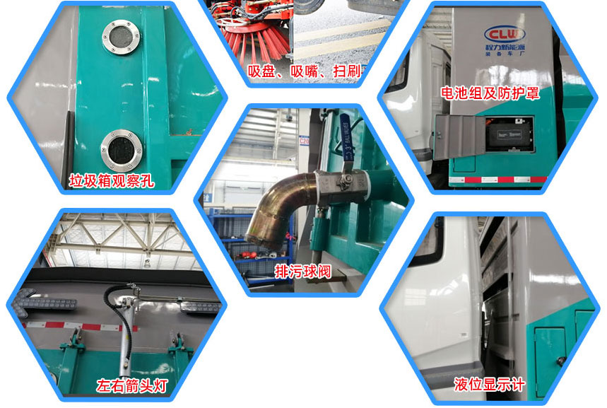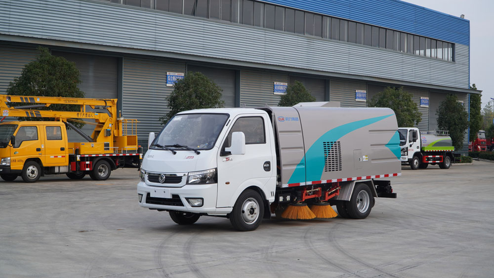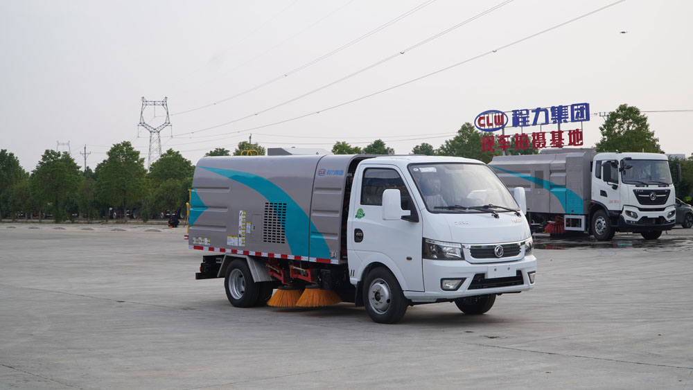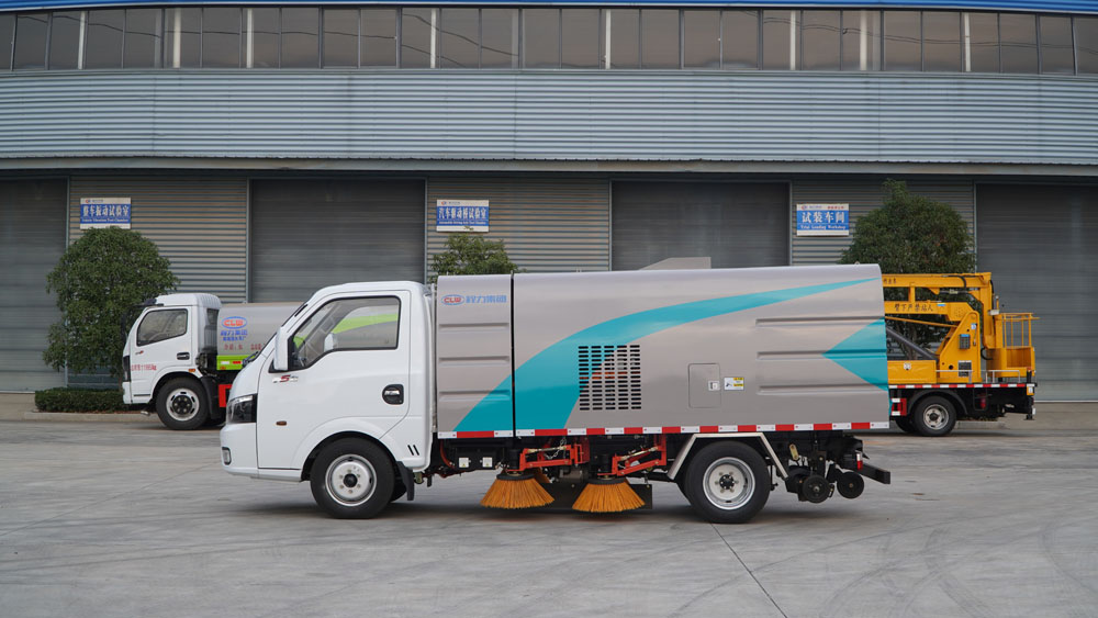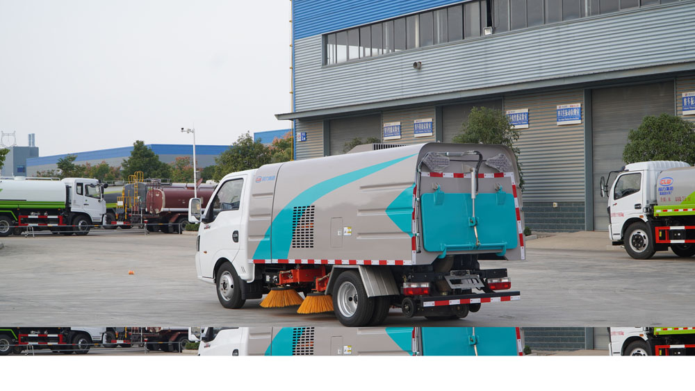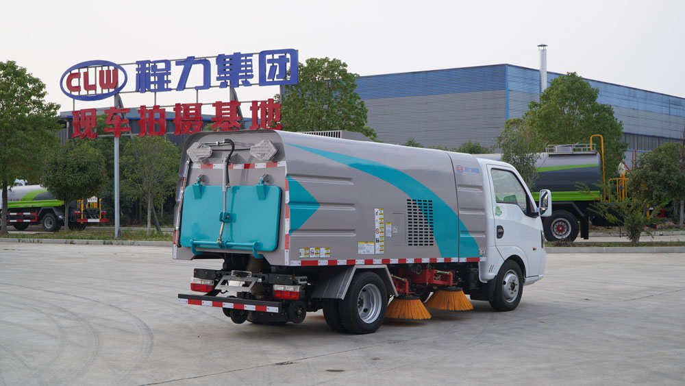 3、掃路車采用東風(fēng)純電動二類汽車底盤改裝,加裝風(fēng)機(jī)、清水箱、垃圾箱、左右立掃、帶噴水桿的寬吸嘴、掃盤降塵系統(tǒng)、液壓系統(tǒng)、專用裝置電控系統(tǒng)和副車架等改裝而成。