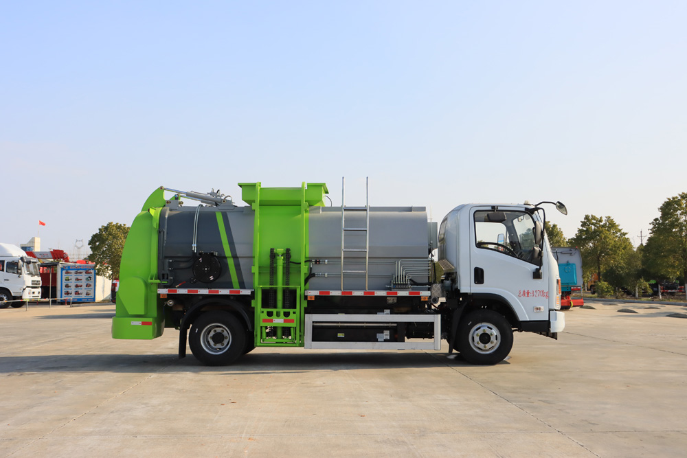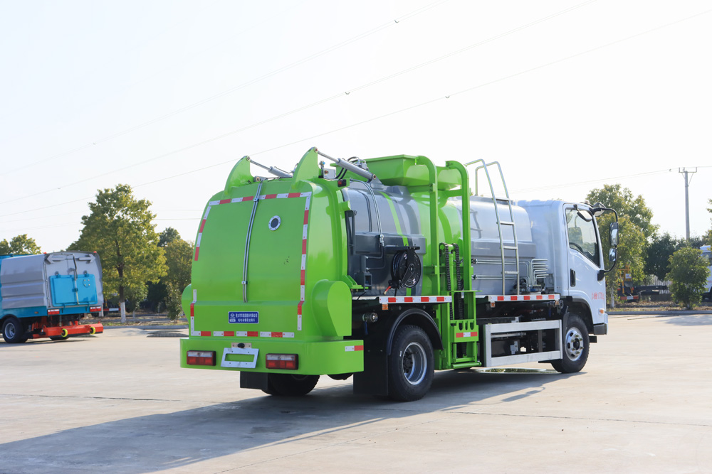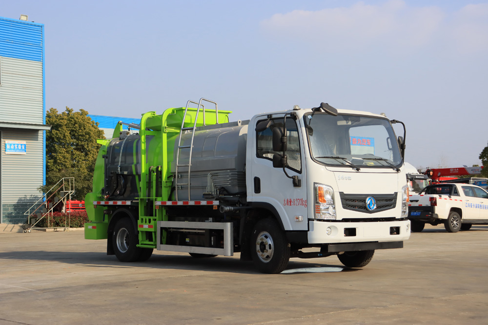 四、其他說明: 東風(fēng)純電動餐廚垃圾車是在東風(fēng)純電動二類底盤的基礎(chǔ)上,加裝垃圾箱、垃圾桶提升機(jī)、清洗裝置、液 壓系統(tǒng),由機(jī)械、液壓(氣路)、電器三部分合為一體的專用廚余垃圾處理、轉(zhuǎn)運(yùn)作業(yè)車。 工作原理:整車為全密封型,自行壓縮、自行傾倒、壓縮過程中的污水全部進(jìn)入污水箱,徹底的解決了 垃圾運(yùn)輸過程中的二次污染,具有壓力大、密封性好、操作方便。安全等優(yōu)點(diǎn)。垃圾箱可實(shí)現(xiàn)箱內(nèi)餐廚垃圾 固液的初步分離,并采用大容積污水箱,提高產(chǎn)品裝載量; 電控系統(tǒng)采用無線遙控,并通過作業(yè)動作邏輯互 鎖,保證操作的精準(zhǔn)性,杜絕誤操作。