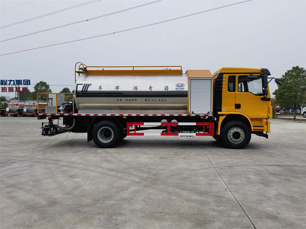 四、其他說明: 智能型瀝青灑布車是一種專業灑布乳化瀝青、稀釋瀝青、熱瀝青、高粘度改性等瀝青的半智能科技產品。用于修筑高等級公路瀝青路面 底層的透層油、防水層、粘結層的灑布。該灑布車由汽車底盤、瀝青罐體、瀝青泵送及噴灑系統、液壓系統、燃燒及導熱油加熱系統、控 制系統、氣動系統、操作平臺構成。